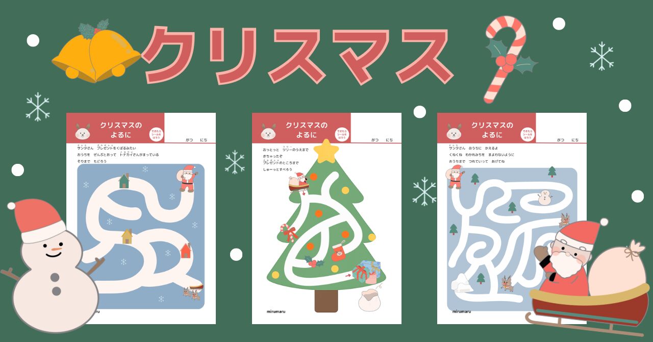クリスマスをテーマにした迷路5枚セット