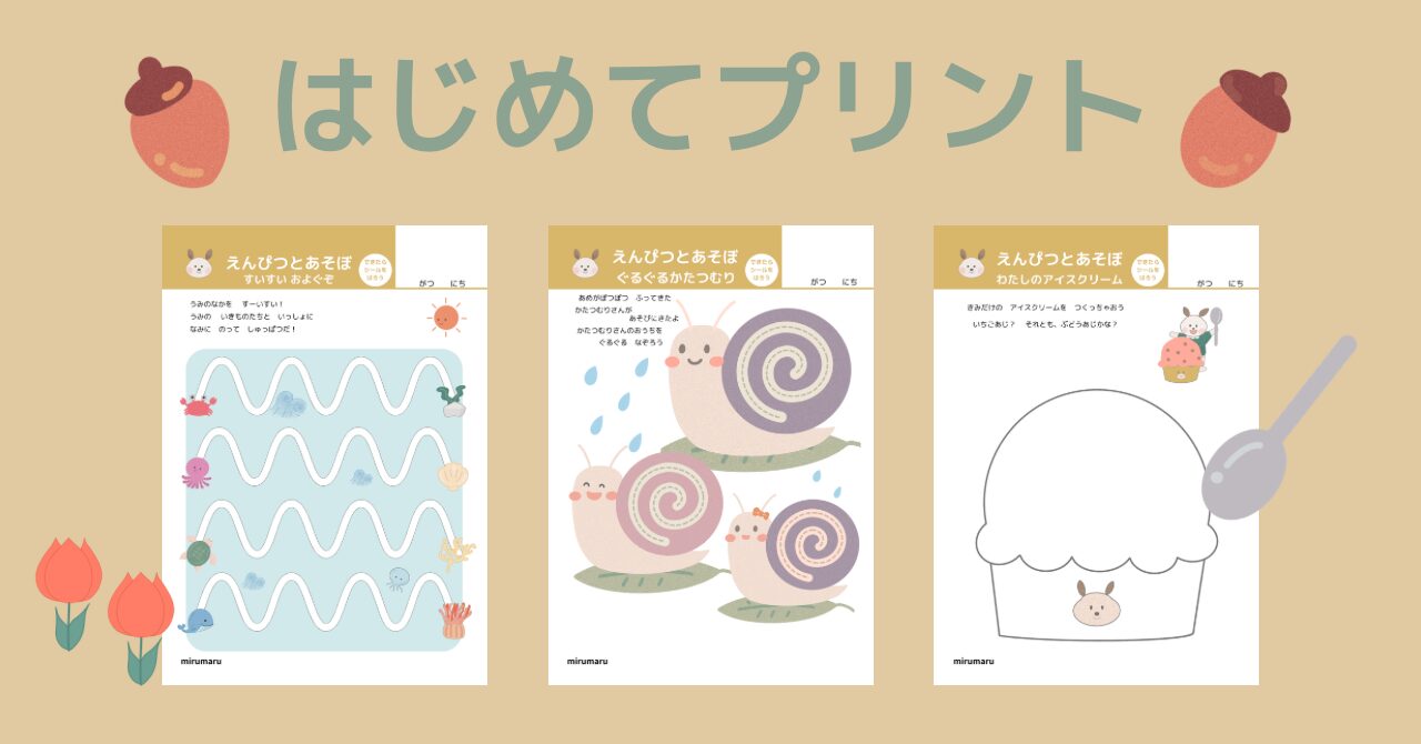むずかしさ1から、すこしレベルアップしてくねくね道や、丸を書く練習のぐるぐるを練習します。